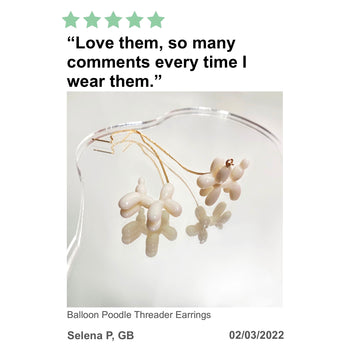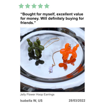 This beautiful, playful and original jewellery has been a huge hit with my teenage daughter. She loved the gummy bear and the balloon dog earrings and has been wearing them constantly and received many compliments from her friends. These effortlessly stylish designs perfectly combine sophistication with a sense of fun. She loves them!