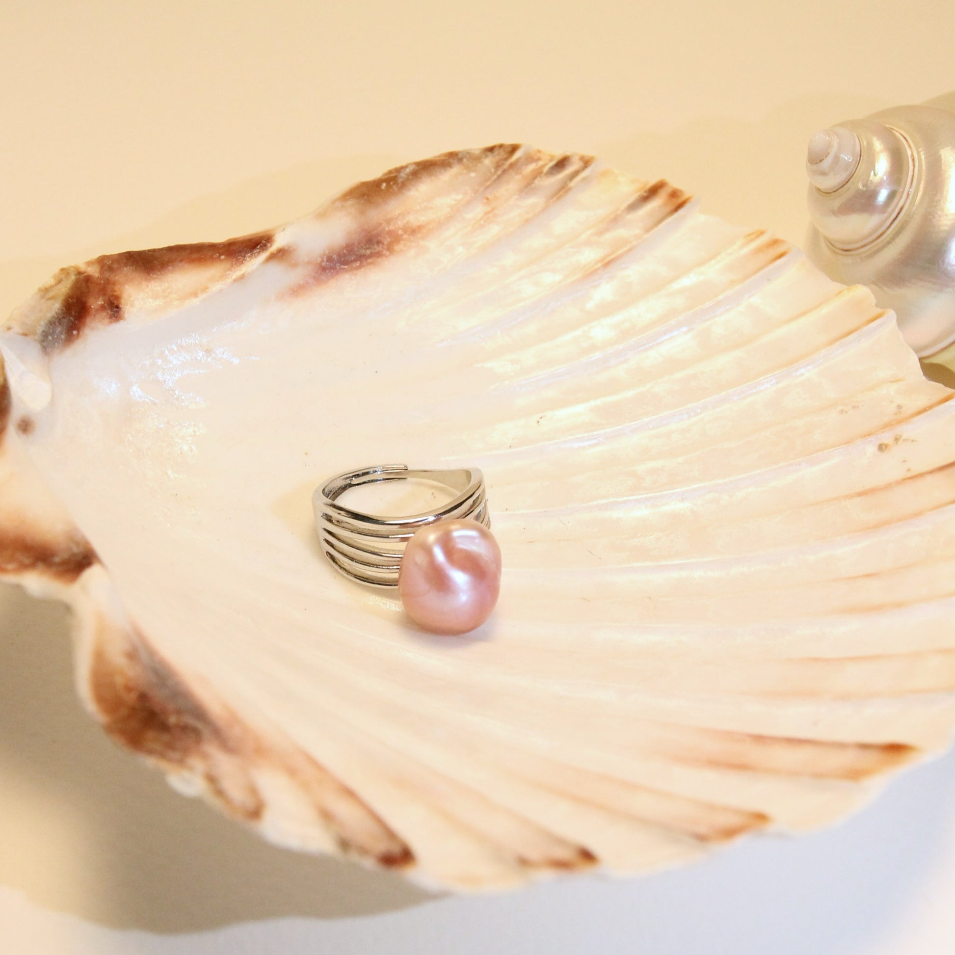 A delicate wave of color and form, the Mauve Tide Pearl Ring features a naturally shaped pink-lavender baroque pearl — a quiet statement of individuality and organic beauty.