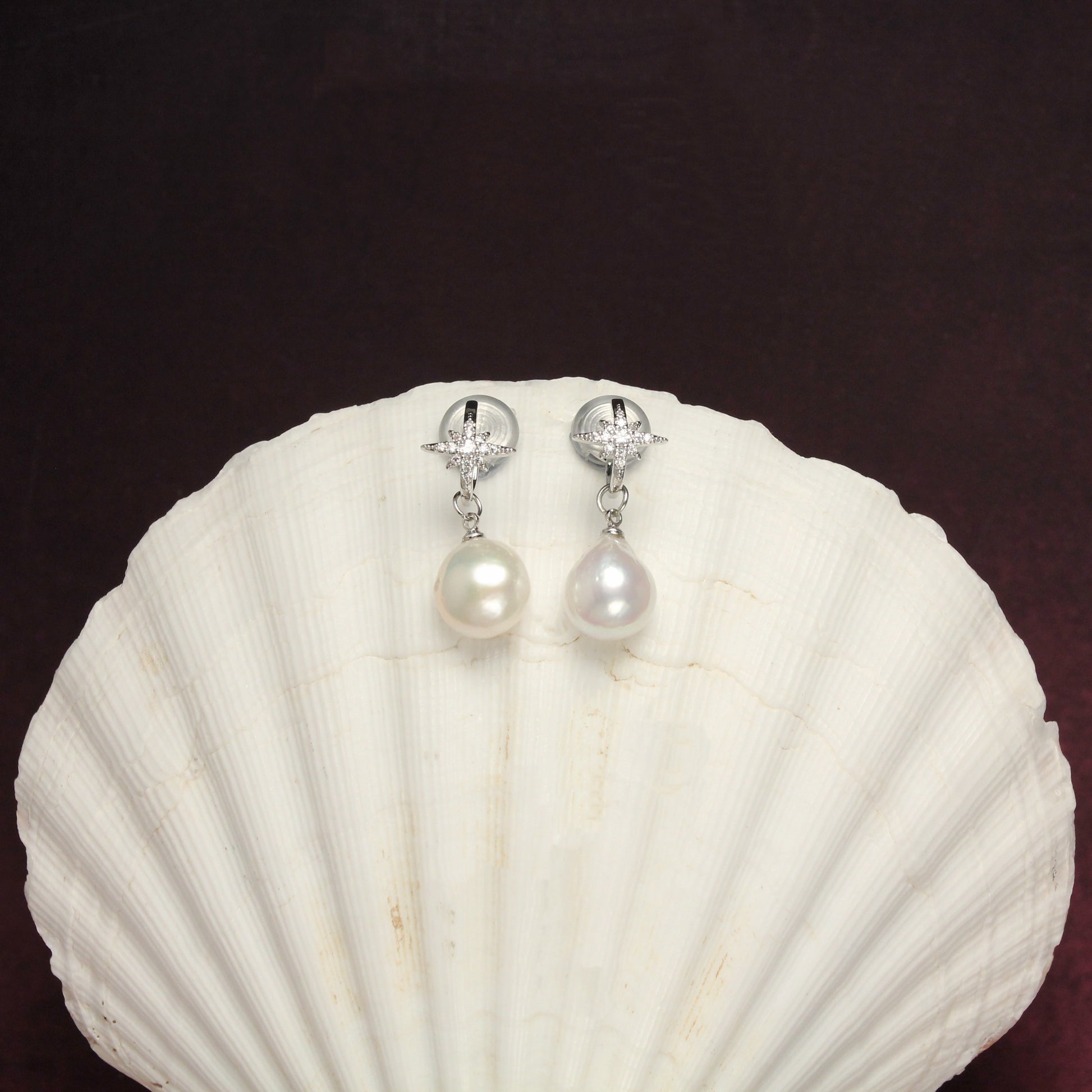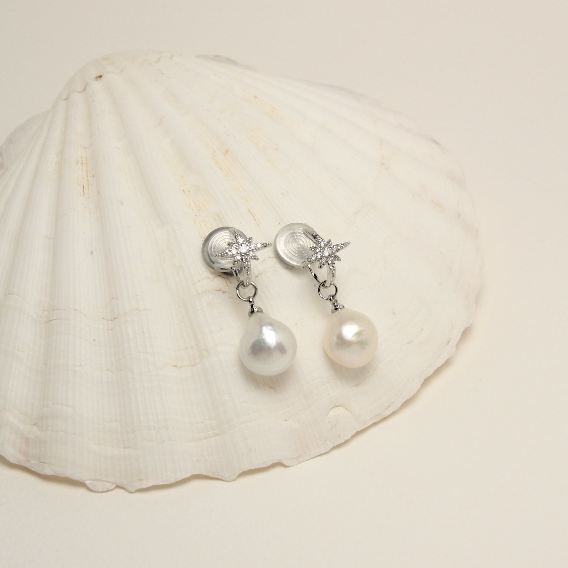 Celestial North Star Pearl Clip Earrings