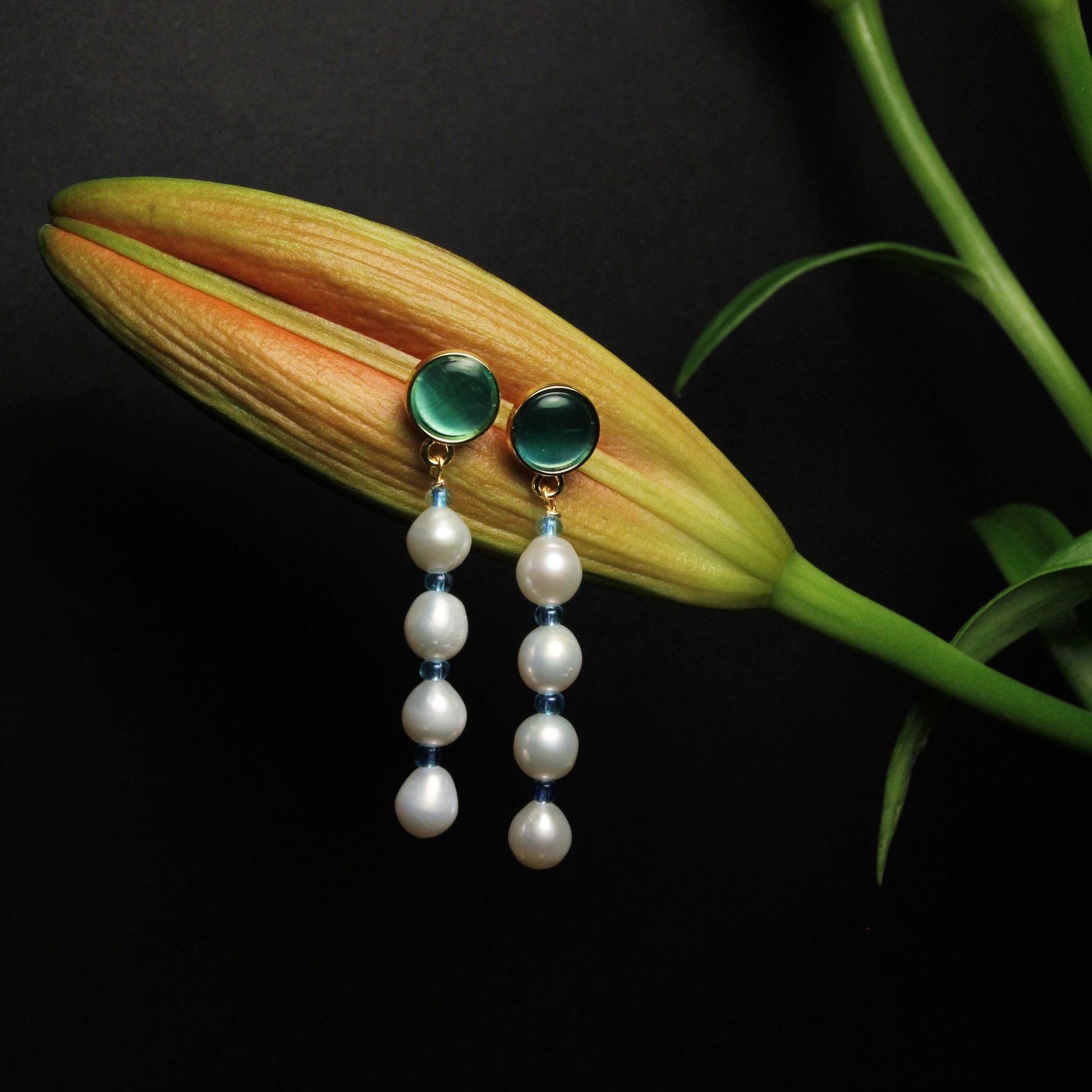 In the old legend, mermaid tears turn into pearls. Green eyes twinkle as the change of light, drop by drop of pearl tears and acrylic drop down together. Bring the melancholy or joy of a mermaid in the deep sea.