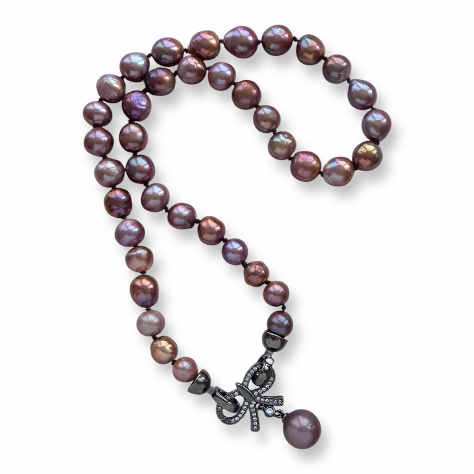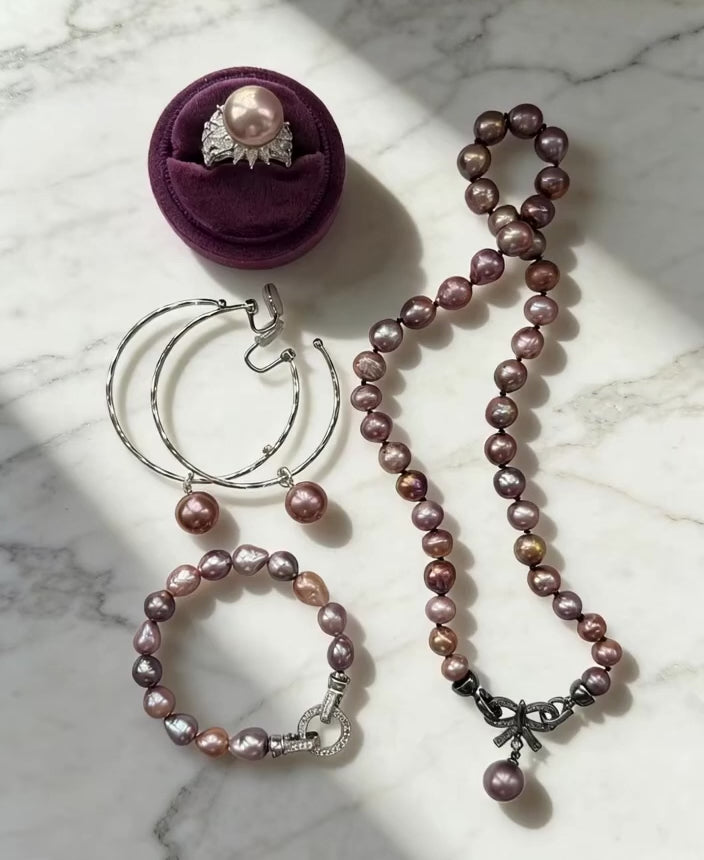 A strand of natural deep violet freshwater pearls, chosen for their quiet depth and velvety lustre.