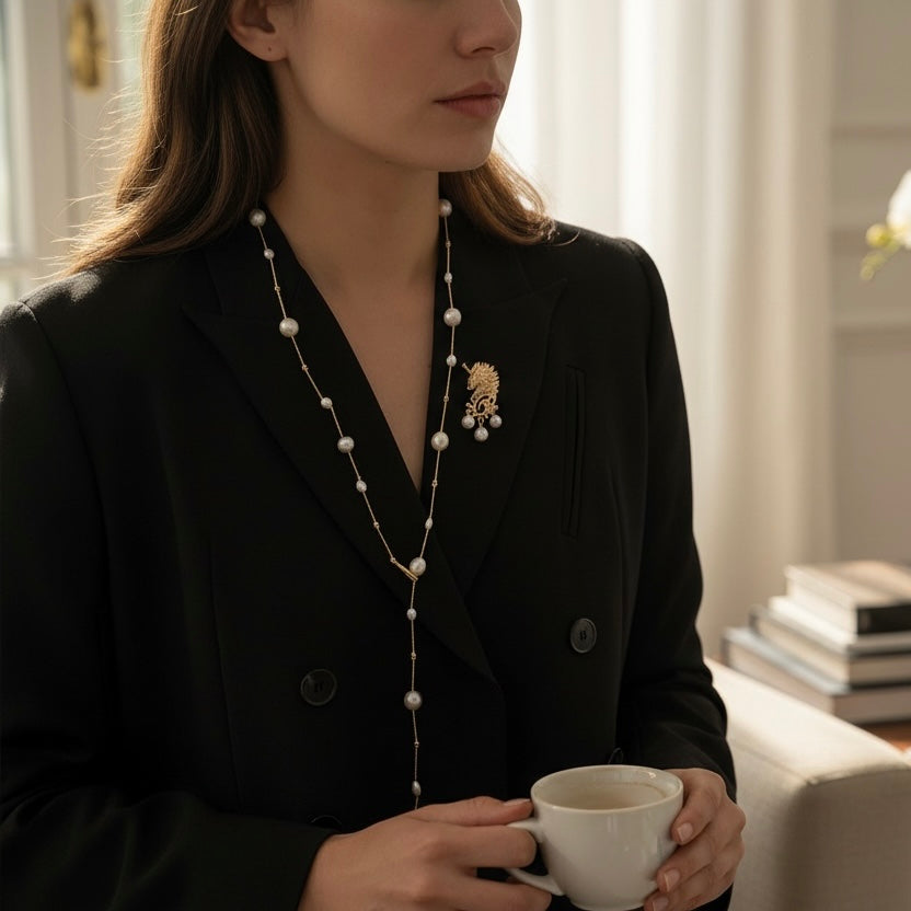 Graceful and endlessly versatile, the Luna Cascade Necklace captures the quiet poetry of moonlight reflected on flowing water.