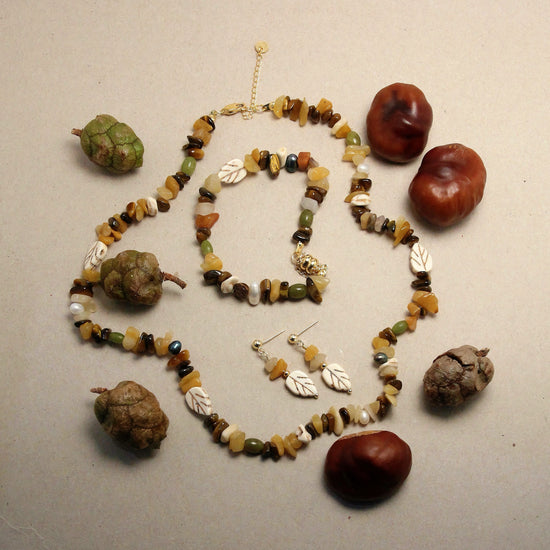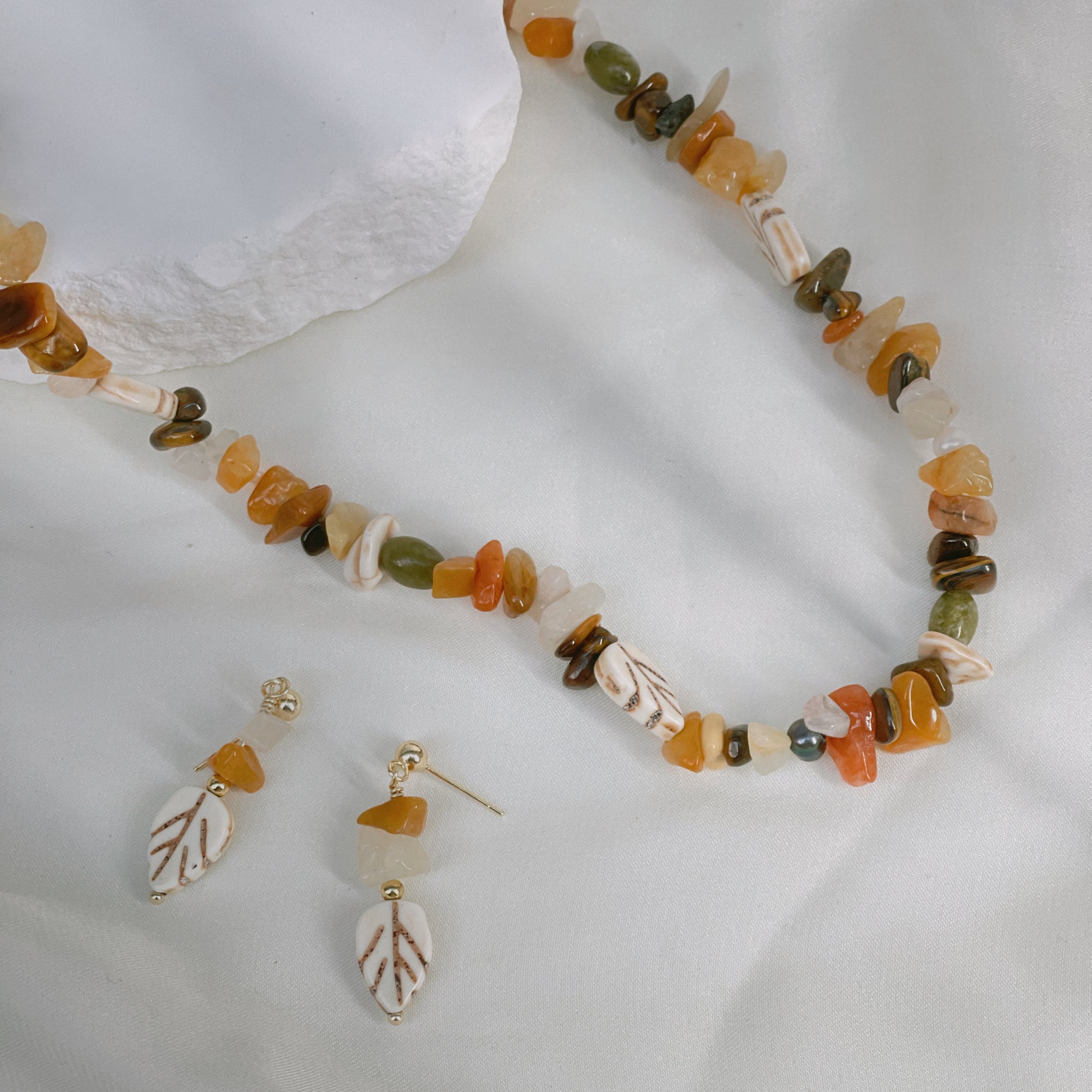 Autumn Elegance Gemstone And Pearl Necklace/ Earrings/Bracelet