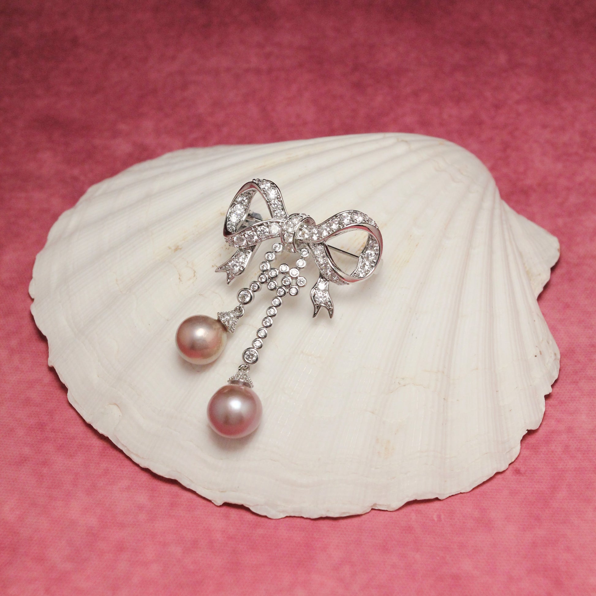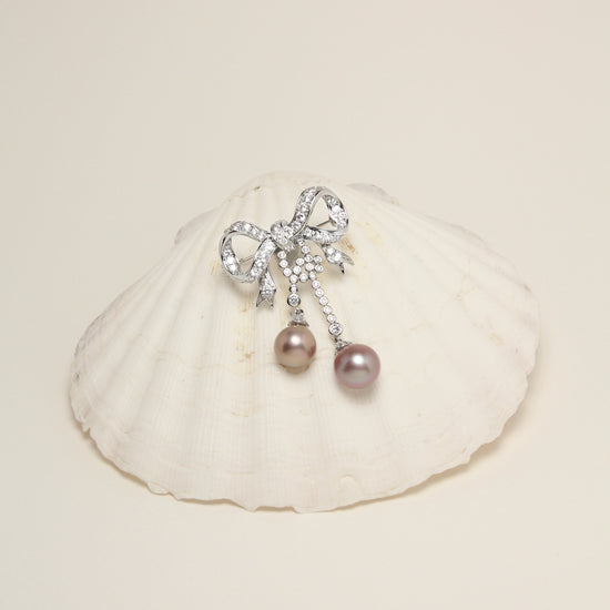 A sculptural bow brooch finished with softly luminous pearls. Designed with quiet balance and gentle movement, this piece brings a subtle elegance to coats, knits, or evening looks — refined, timeless, and thoughtfully detailed.