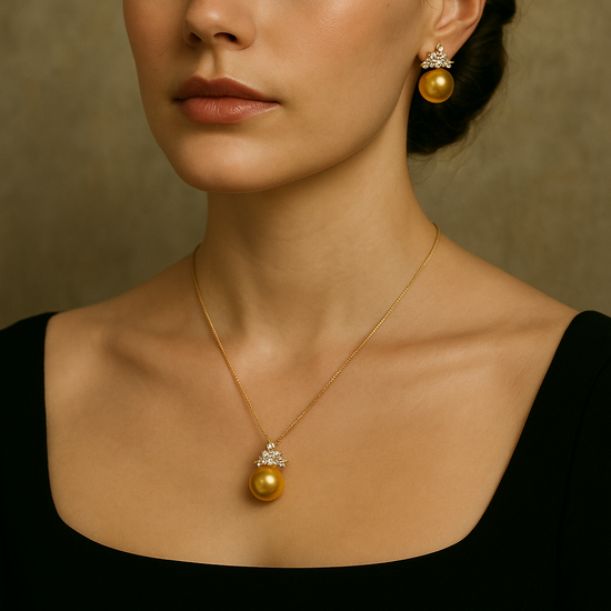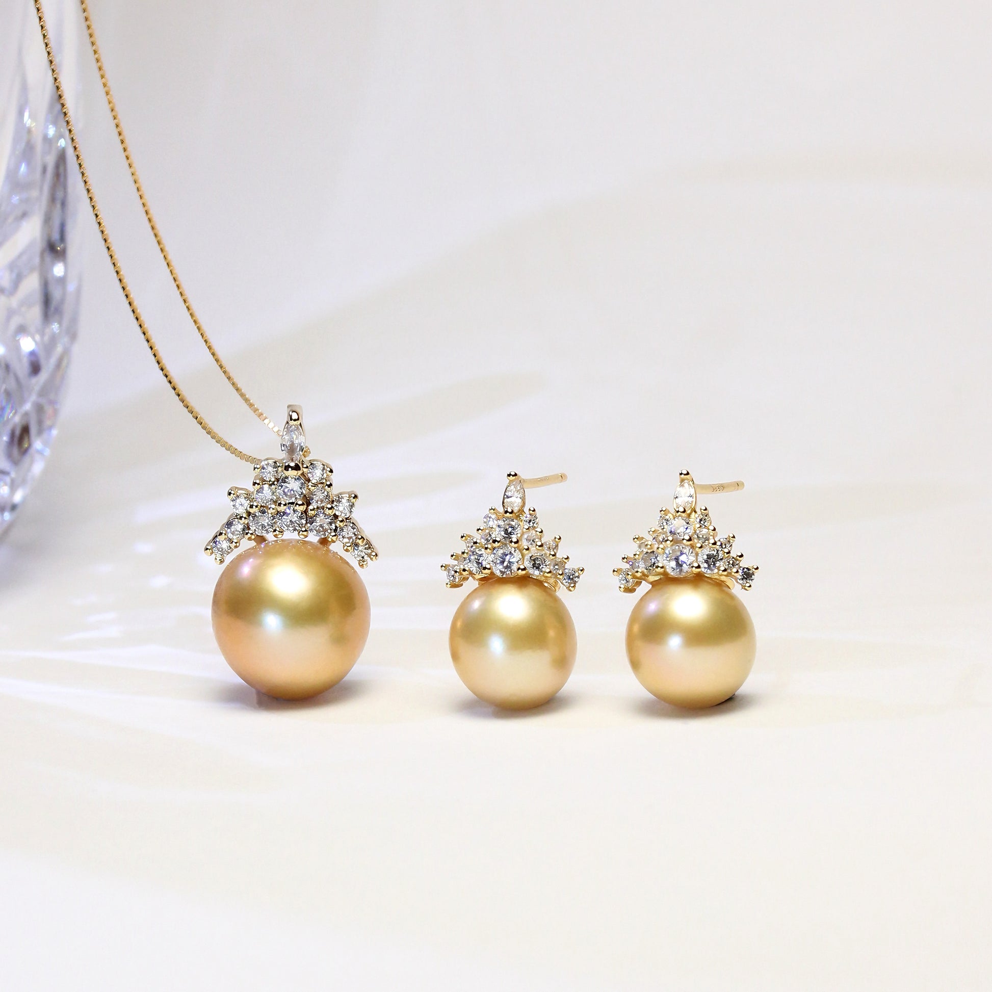 • Materials: Gold-Plated Sterling Silver, Natural Golden Pearls (9mm+)