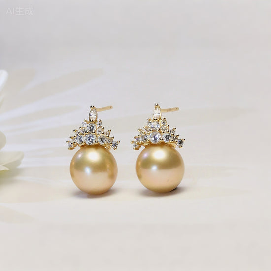 Bathed in a warm golden glow, the Solara Pearl Earrings feature lustrous natural golden pearls crowned with clusters of cubic zirconia.