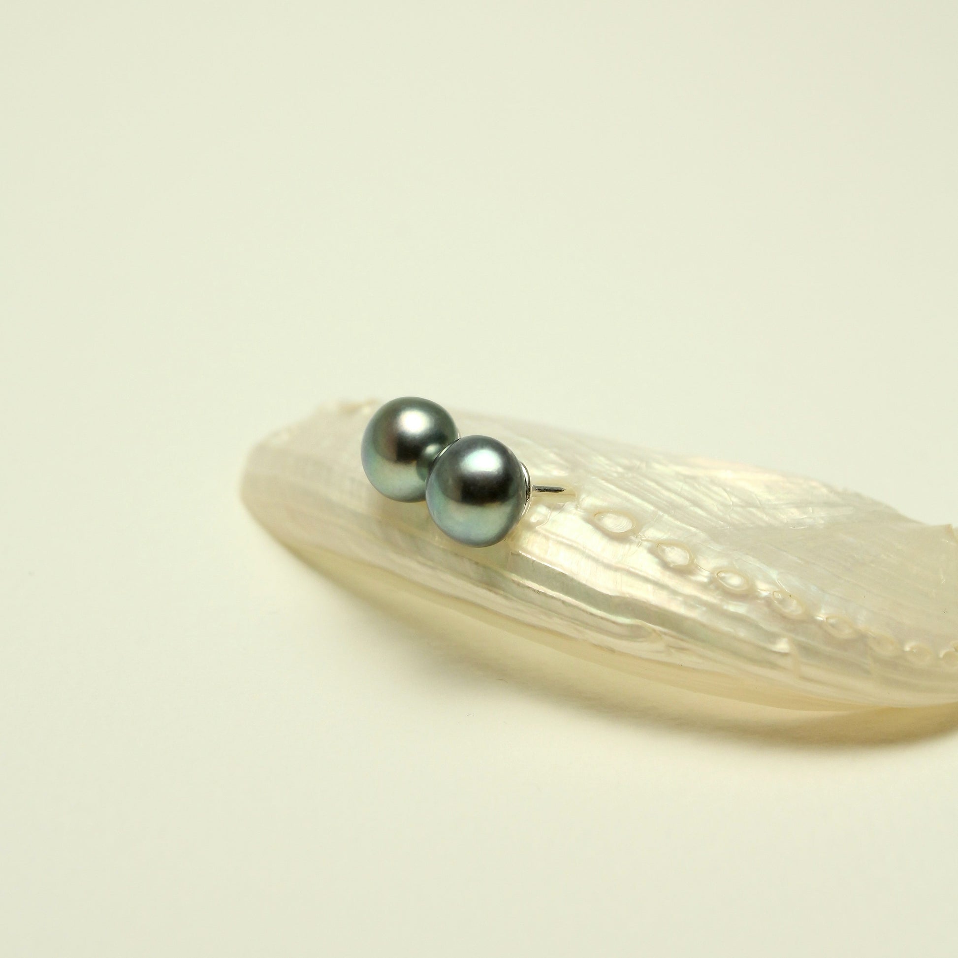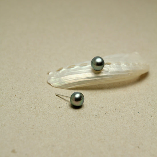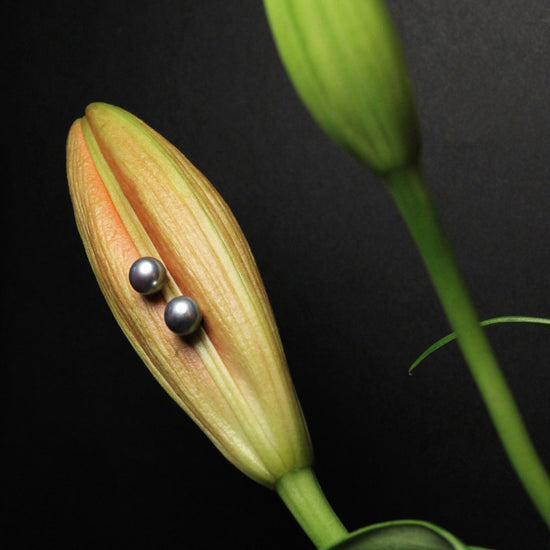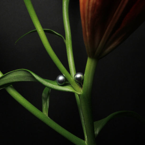 A study in simplicity and quiet power — the Noir Tide Pearl Studs feature 6mm black freshwater pearls set on sterling silver posts.