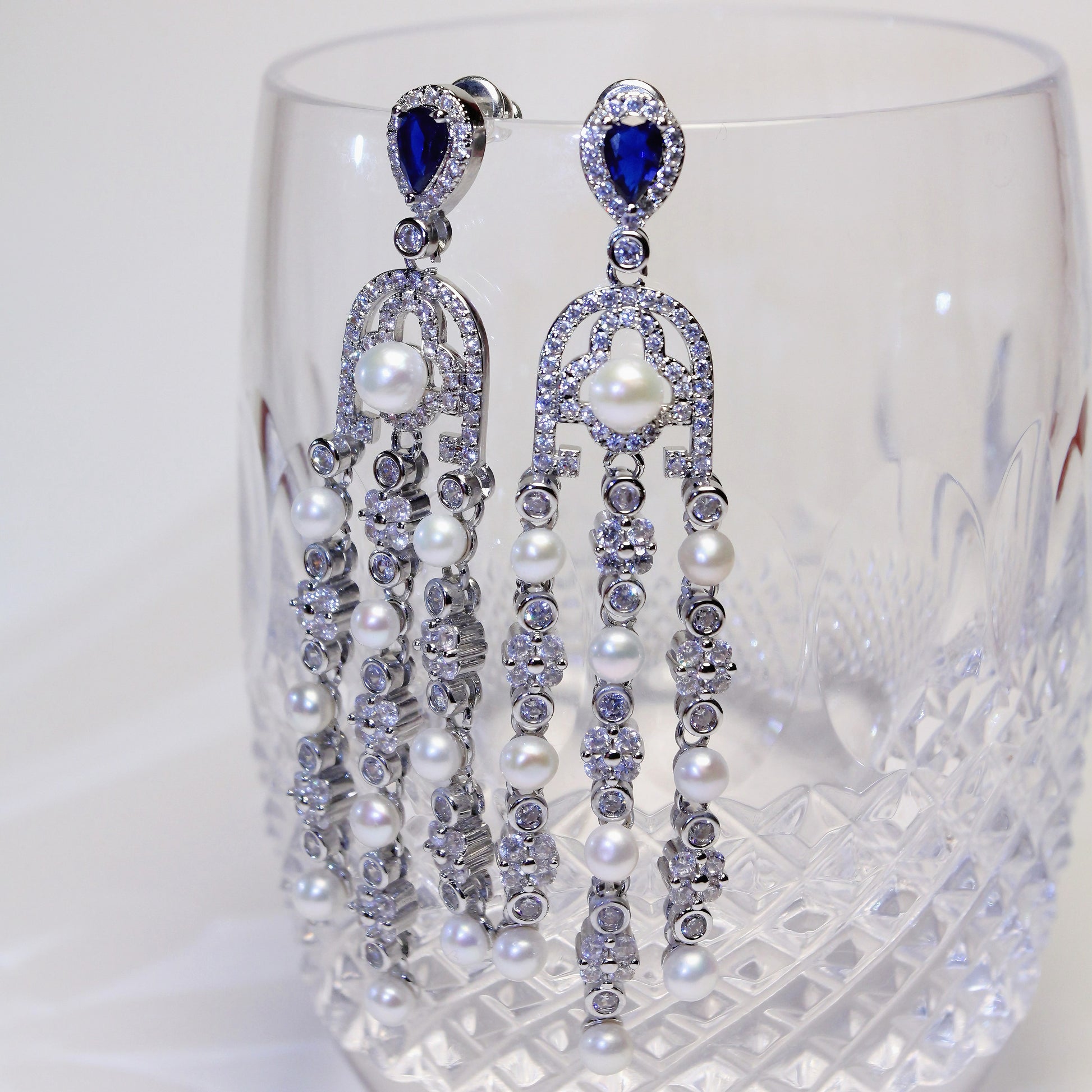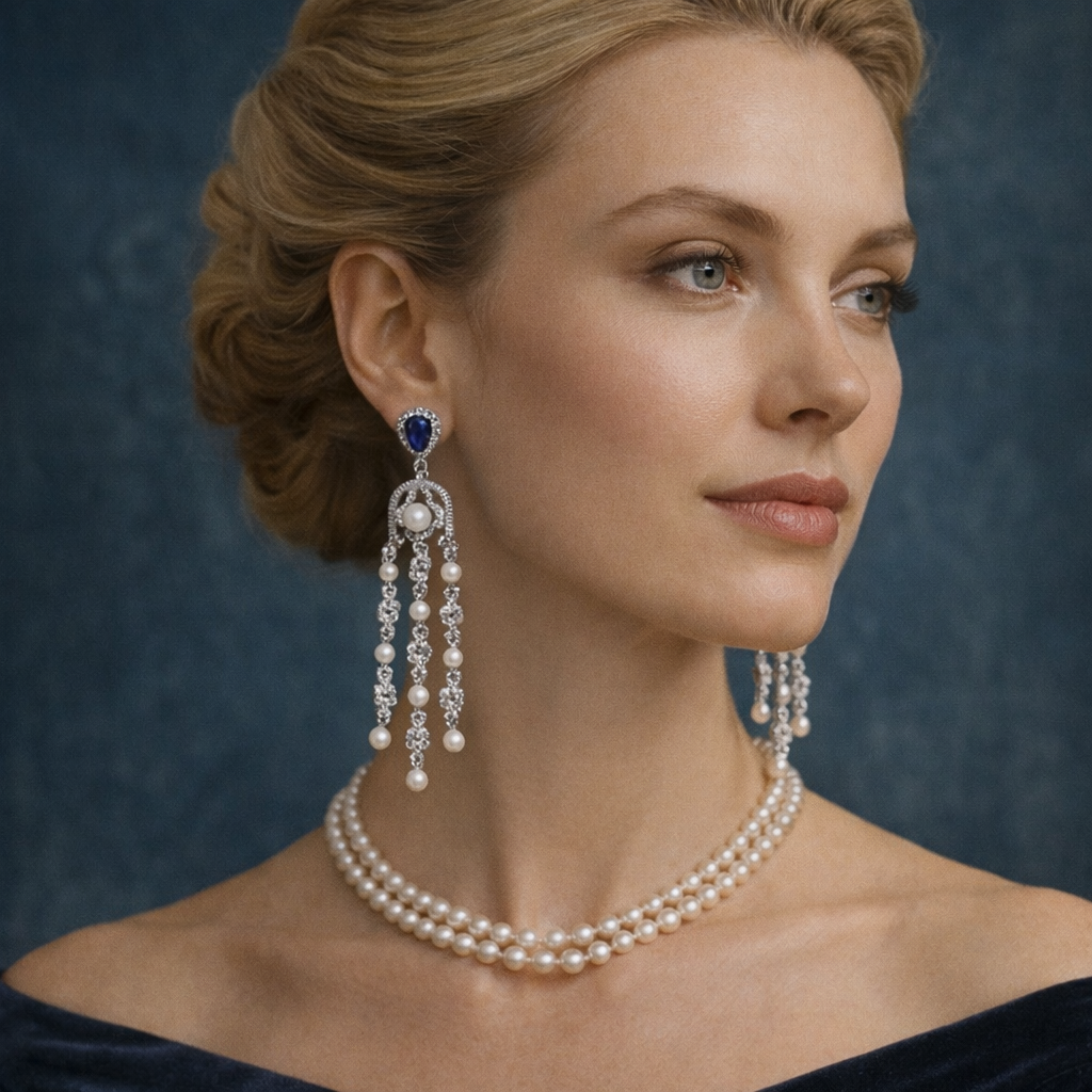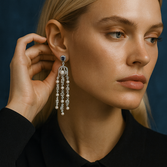 The Celeste Cascade Earrings embody the elegance of starlit evenings and vintage glamour.