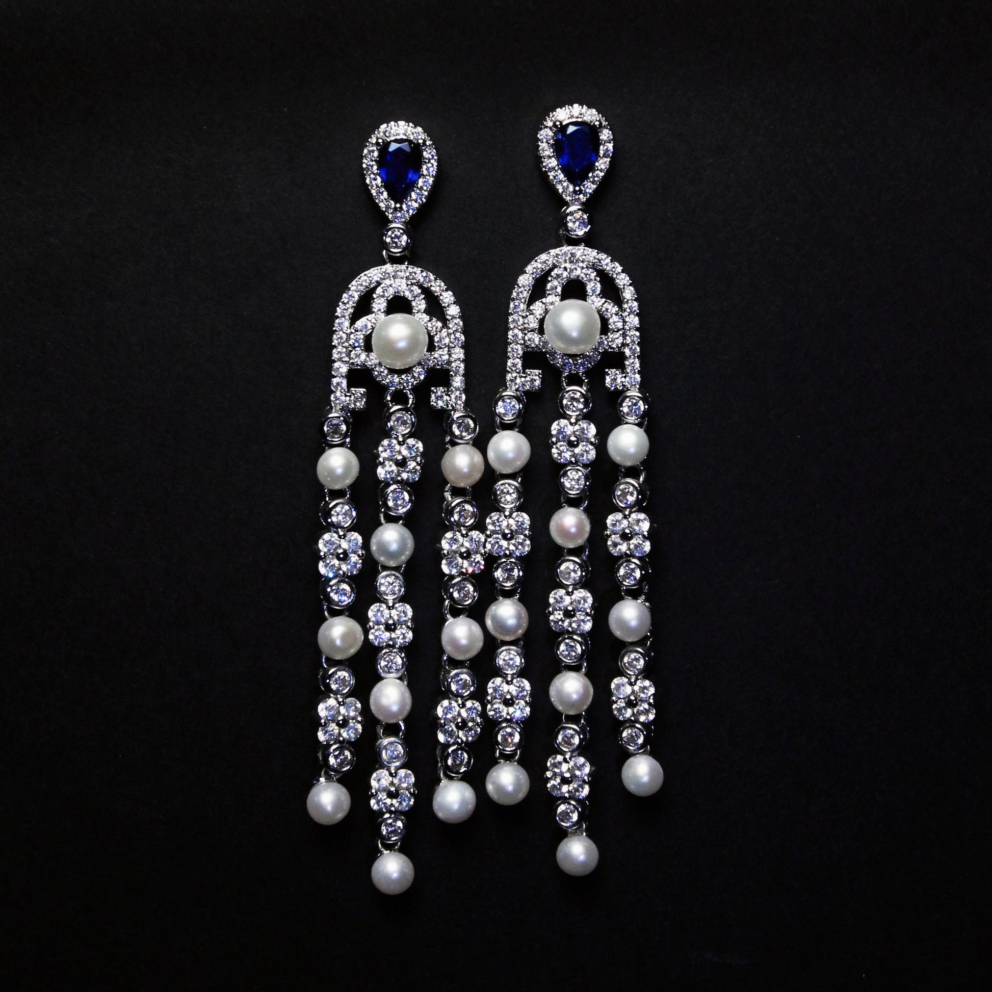Featuring hand-set cubic zirconia and lustrous freshwater pearls, each strand flows gracefully with every movement, reflecting a symphony of light and refinement.