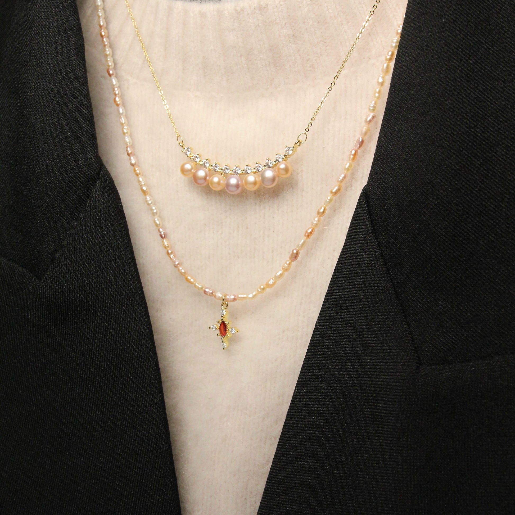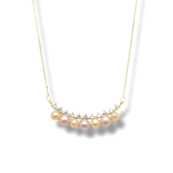 Crafted from exquisite, colorful freshwater pearls and high-quality zirconia, this necklace showcases a captivating "smile" design that radiates charm and elegance. Perfect for any important occasion, it pairs beautifully with our matching pearl stud earrings to create a flawless look that exudes sophistication and allure.