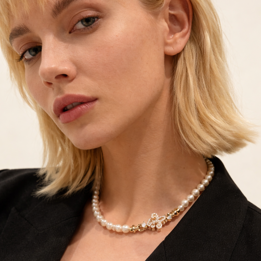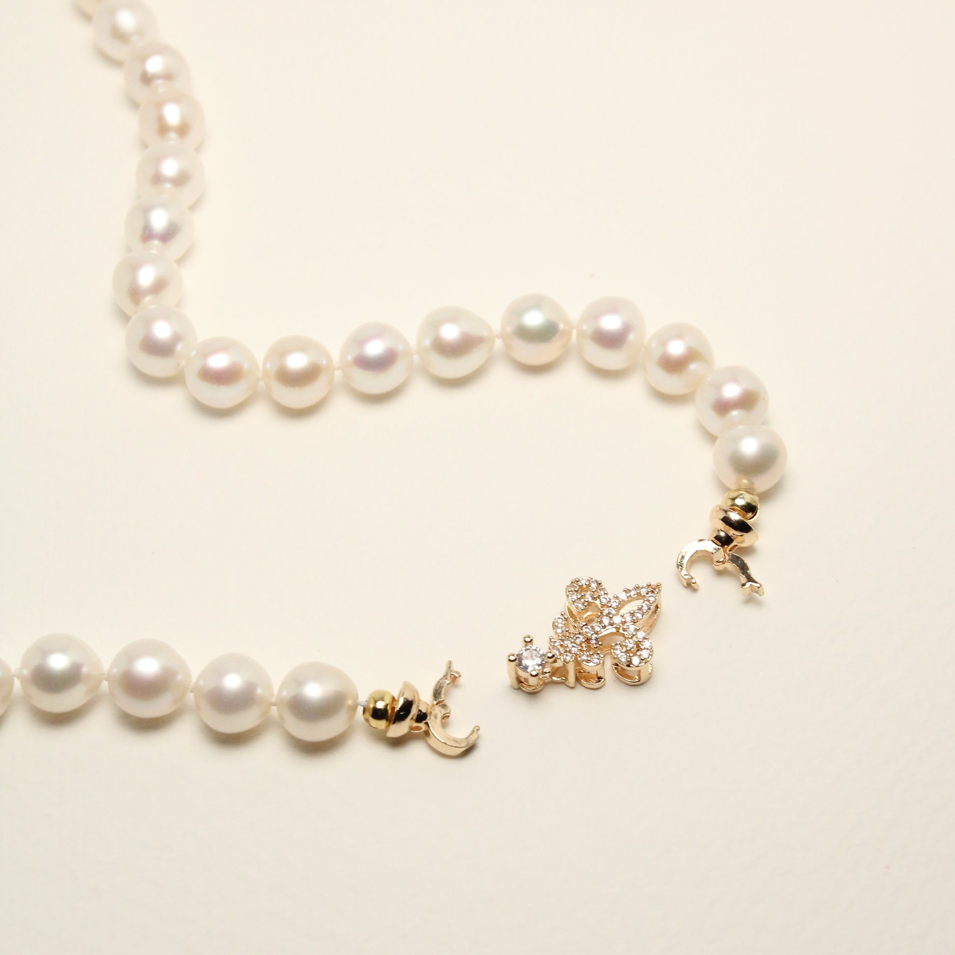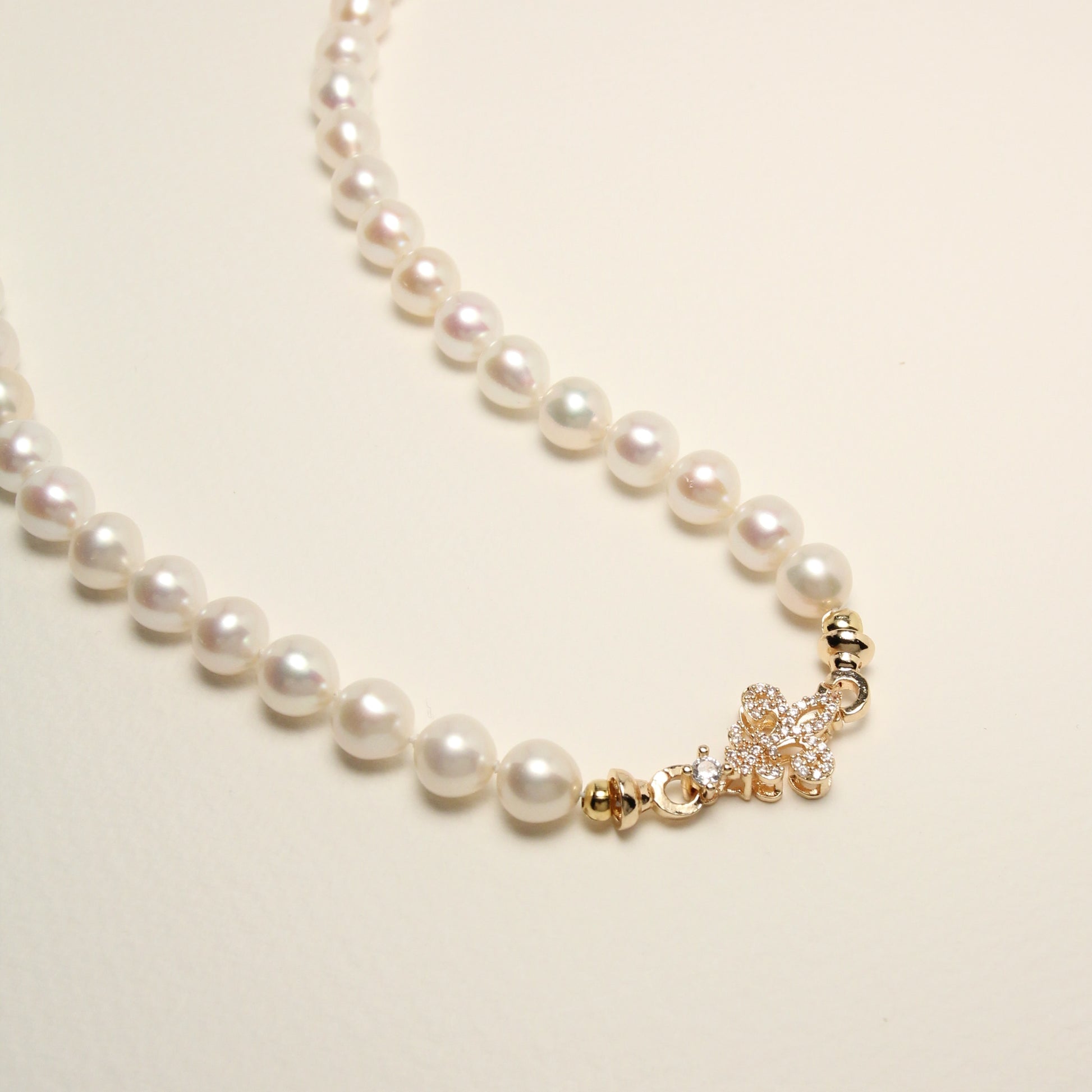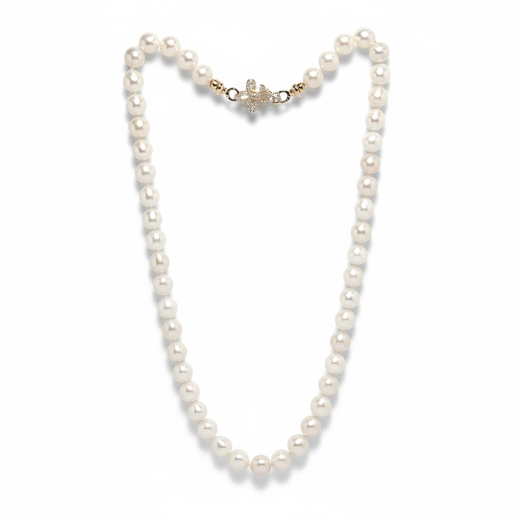 A classic pearl strand centred around an iris-inspired clasp. Elegant and versatile, this necklace can be worn with or without the decorative clasp, offering two refined looks in one piece.