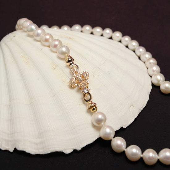 Materials: Gold-filled metal, natural freshwater pearls, cubic zirconia