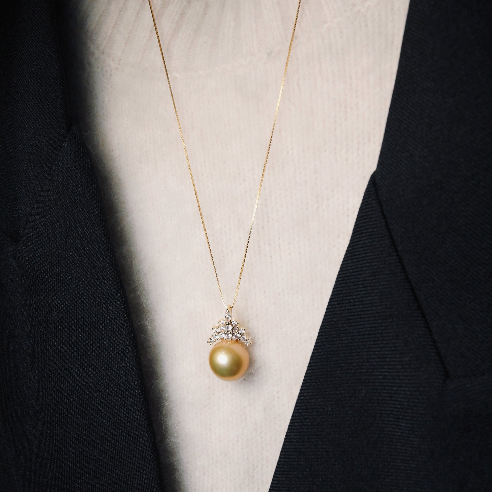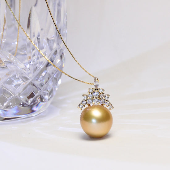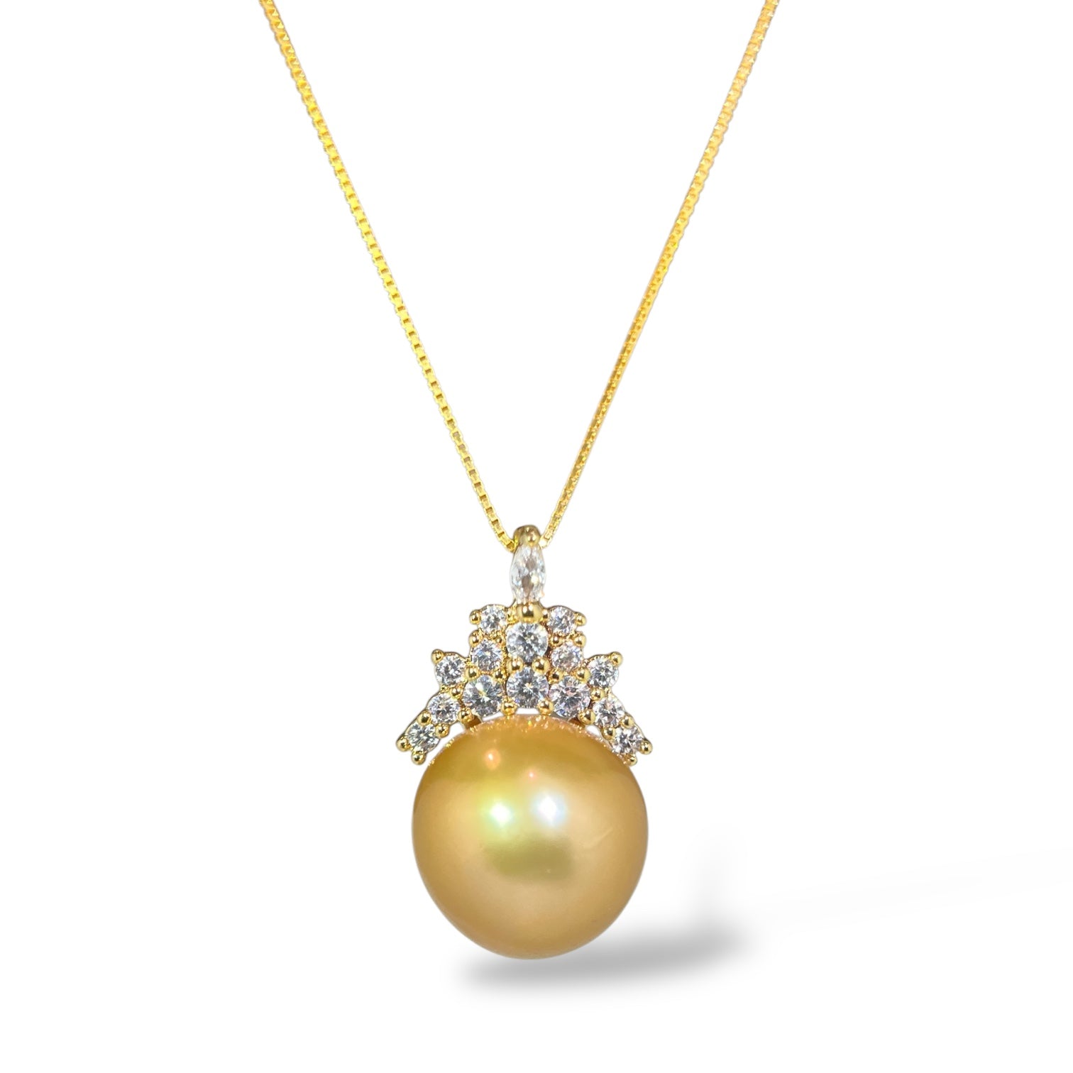 Inspired by the warmth of sunlight, the Solara Golden Pearl Necklace features a radiant golden pearl crowned with shimmering cubic zirconia.