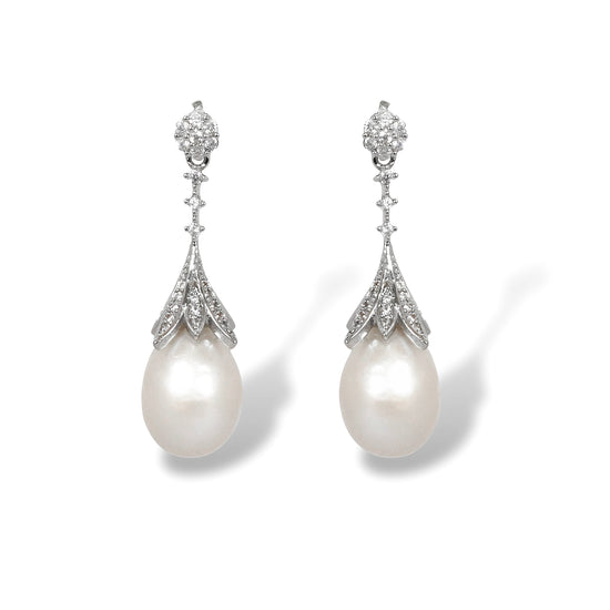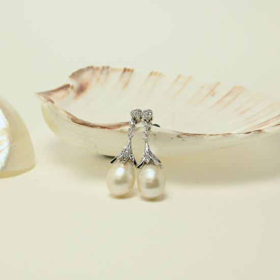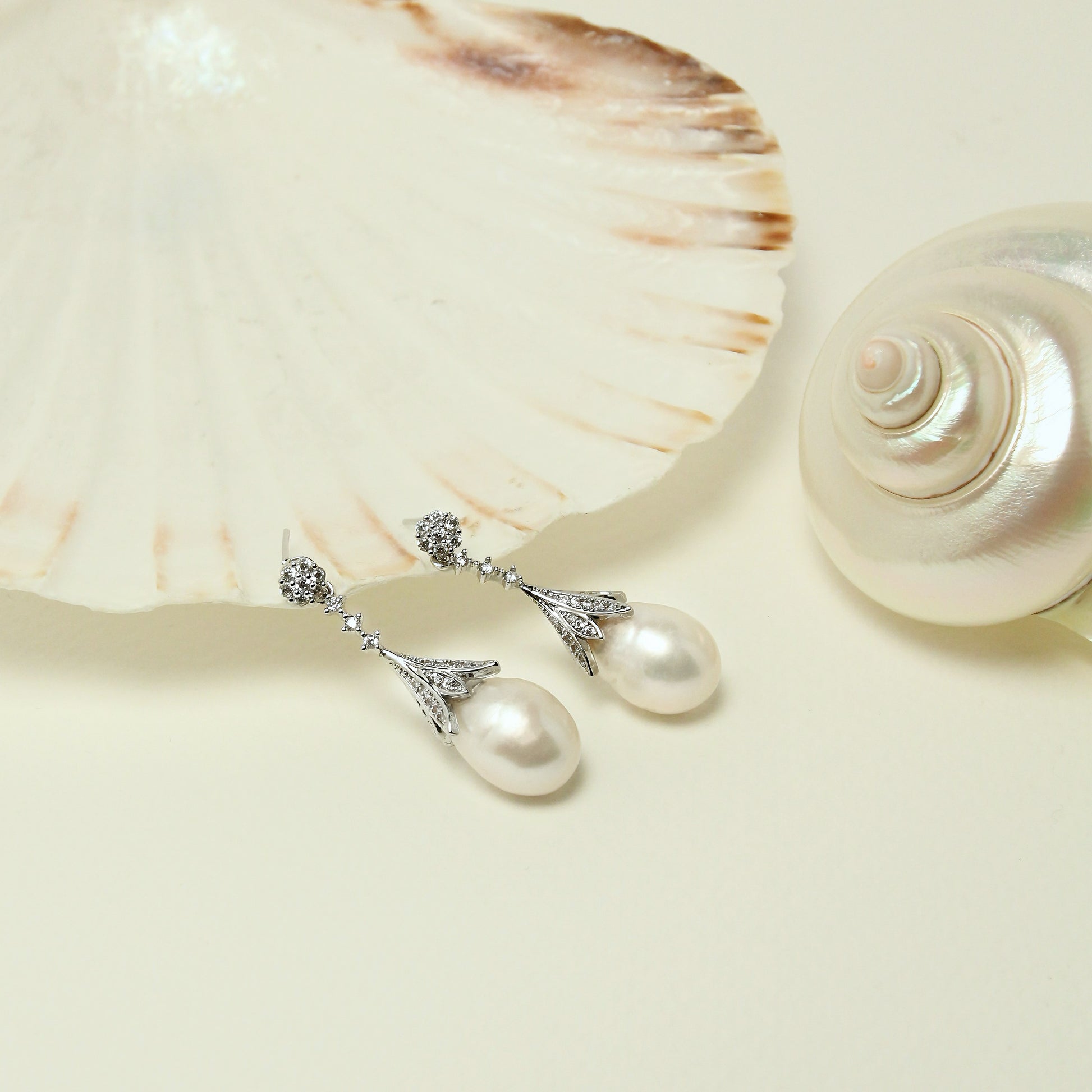 Graceful and refined, the Fleur de Givre Earrings echo the delicate beauty of a frost-kissed bloom. Each earring features a luminous natural drop pearl, gently embraced by a petal-like crown of pavé-set zircon stones. The design captures the elegance of winter’s stillness — timeless, serene, and radiant.