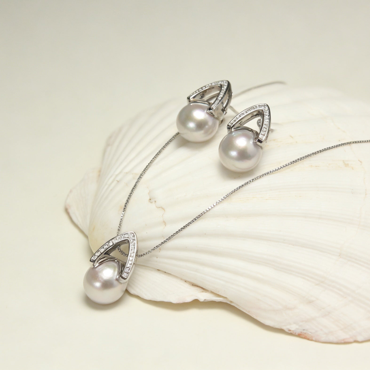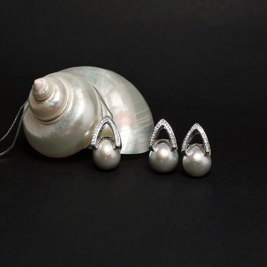 Inspired by the purity of form and the quiet power of ancient geometry, the Arché Pearl Earrings echo the silhouette of an arched gateway — timeless, sculptural, and serene. A lustrous pearl rests within a delicate, pavé-framed curve, like a suspended moment of stillness.